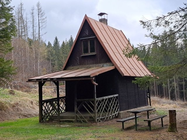 Nedaleko zříceniny kaple sv. Anny jsem spatřila tuto novodobou loveckou chatu.
